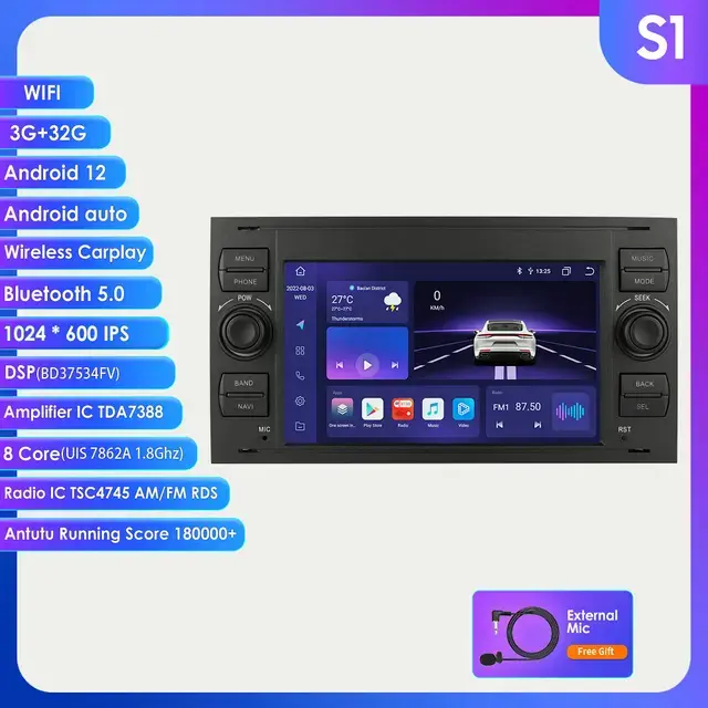 Avtomobilski radio multimedia, Ford Focus 2 Mondeo S-max C MAX Galaxy Fiesta Kuga Transit Fusion Connect, avtoradio Carplay GPS, S1 B
