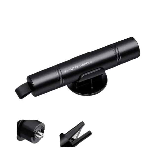 Integriran rezalnik varnostnega pasu: Vgrajeni rezalnik varnostnega pasu vam omogoča hitro prerezanje zagozdenih varnostnih pasov, kar omogoča hiter in varen pobeg. Izjemno ostro rezilo je zaščiteno zaradi varnosti, kar preprečuje nenamerne ureznine, hkrati pa zagotavlja učinkovito rezanje, ko je to potrebno. Ta dvojna funkcionalnost je celovito orodje za reševanje v sili, ki obravnava dva kritična vidika avtomobilskih nesreč. Ergonomska oblika zagotavlja trden oprijem, tudi v stresnih situacijah, kar omogoča natančno in nadzorovano rezanje.