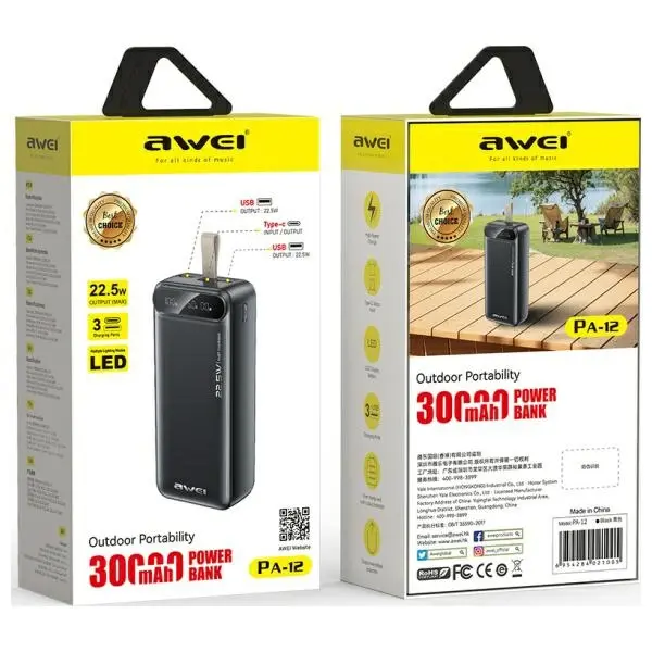 AWEI POWERBANK PA-12 30000MAH 22.5W ZA TELEFONE NA POTI DOLGO POLNIMO