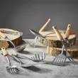 De Buyer lopatka za serviranje peciva z rahlo nazobčanim rezalnim delom iz brušenega nerjavečega jekla in ročaja, narejenega iz bukovega lesa, ki ga francoski proizvajalec pridobiva iz trajnostno upravljanih gozdov Vosges, je del linije izdelkov, za katere je značilen robusten in brezčasen slog. Naravni materiali so dodatno zaščiteni s pastjo čebeljega voska. Lopatka je kot nalašč za seviranje torte, peciva, pit, quicha, koščkov pizze, itd. … Priporočamo ročno pranje.