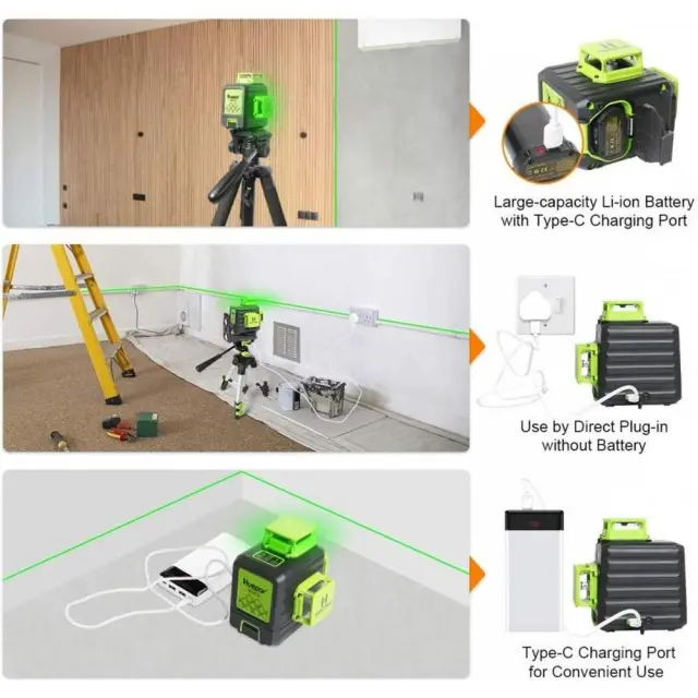 To lasersko orodje uporablja vključeno veliko kapaciteto 3,7 V / 5200mAh litijeve baterije in ponuja čas trajanja do 8 ur.