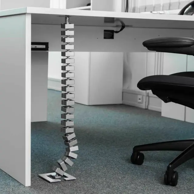 Bachmann vertikalni organizator kablov omogoča optimalno napeljavo kablov na delovnem mestu med mizo, stenskim kanalom ali različnimi napravami na tleh.