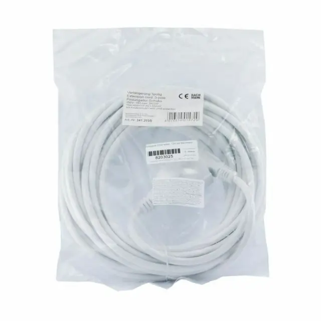 Podaljšek Bachmann visoke kakovosti1 vtičnica Schuko 220VDolžina kabla 10 mBarva: BelaPresek žice: 1.5 mm2