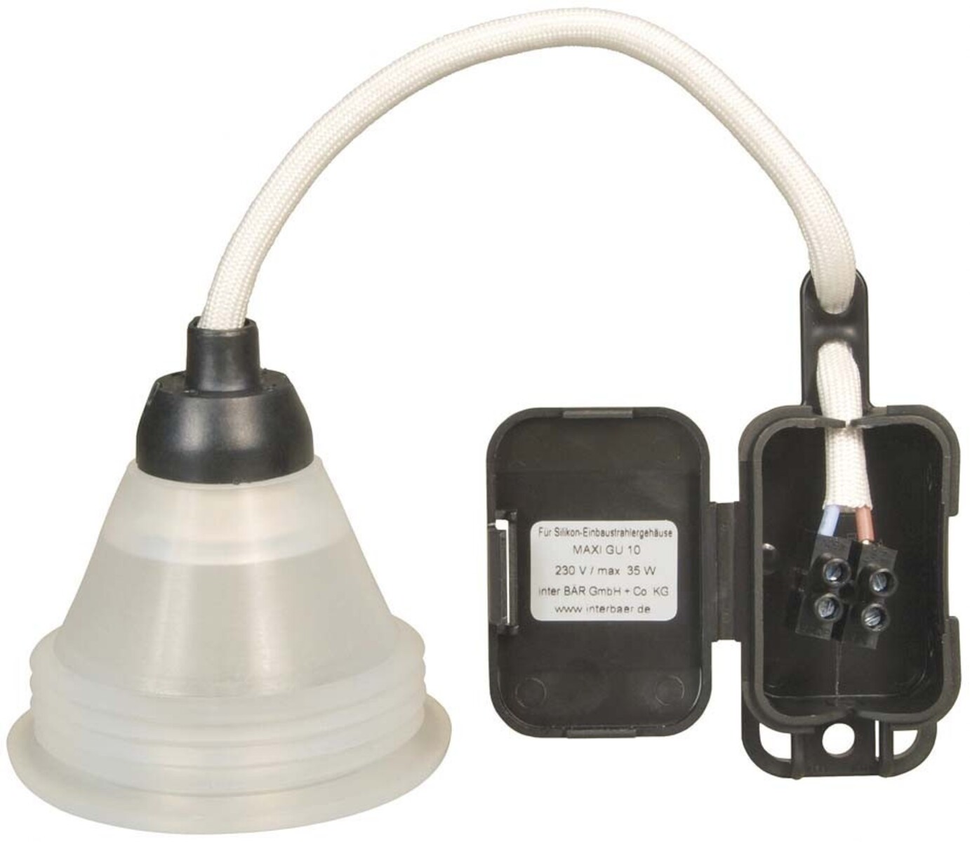 Primerno za zaščito pred strelo: neBachmann silikonsko ohišje 924. 352: več podatkovSilikonsko ohišje za vgradni reflektor MAXI, barva: prozorna Interbär Series 1000, za visokonapetostne halogenske in LED sijalke, odporno na UV-žarke, ozon in staranje, za halogenske sijalke GU10 D: 51 mm, 230 V, največ 35 W ali LED sijalke GU10 230 V do 5 W, primerno samo za halogenske sijalke, ki oddajajo/oddajajo toploto spredaj! Ne uporabljajte svetlobnih virov COOL BEAM, Premer vgradnje: 68 mm, Globina vgradnje: približno 85 mm z vtičnico, Zunanje mere: D: 79 mm, Višina: približno 55 mm (brez vtičnice) EAN: 4016514085866