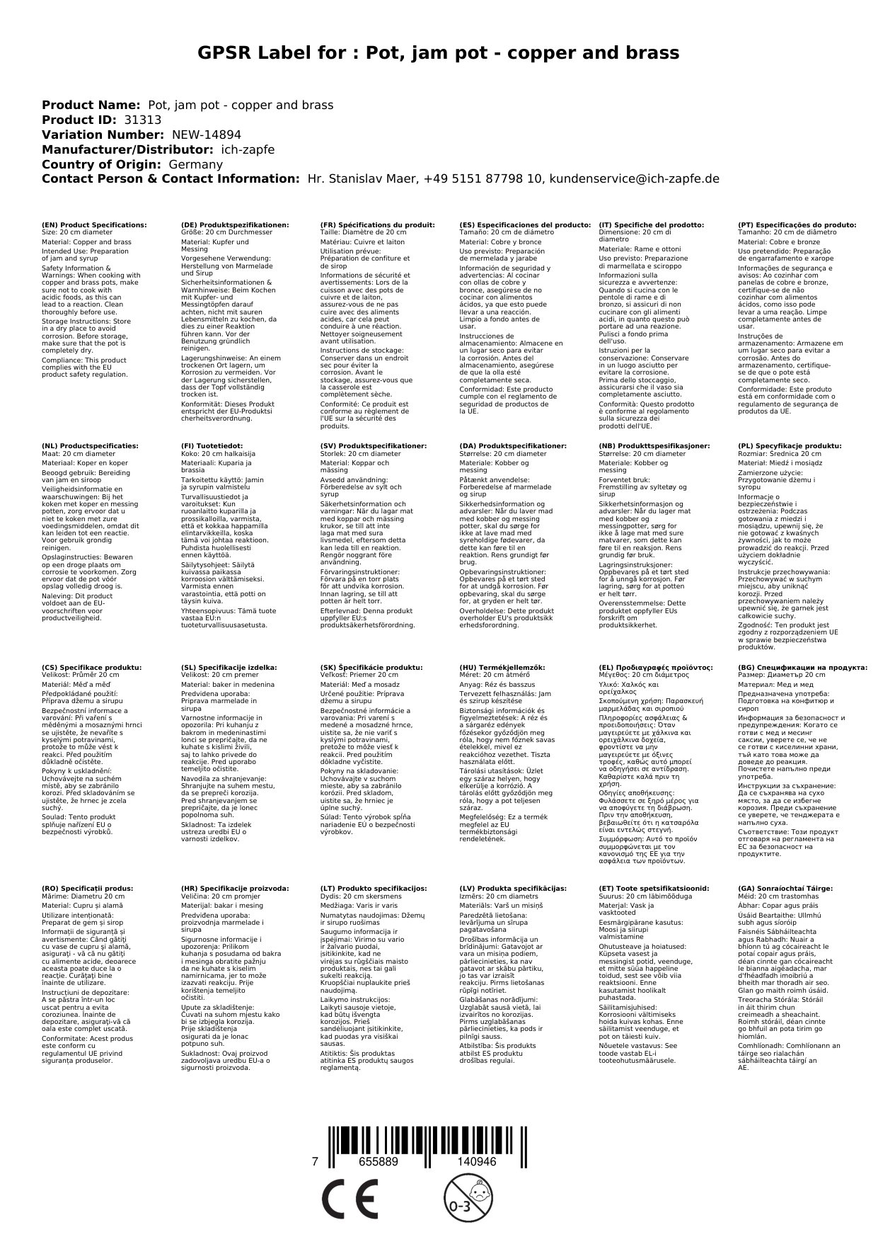 Marmeladni lonec iz bakra in medenine je popolna izbira za vse, ki uživajo v pripravi domačih sladkarij. Z dimenzijami premera 20 cm je primeren za manjše do srednje količine marmelade, sirupa ali drugih sladkih pripravekov. Baker kot material zagotavlja izjemno prevodnost toplote, kar pomeni, da se toplota hitro širi po celotni površini lonca, kar preprečuje lokalne vroče točke in zagotavlja enakomerno kuhanje.