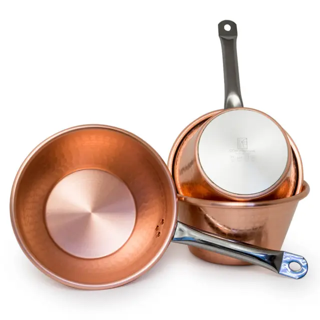 Ročno izdelan bakreni kotel Conotter združuje stoletno tradicijo z moderno funkcionalnostjo. Narejen je iz 99,9 % čistega bakra debeline 1 mm, kar zagotavlja odlično toplotno prevodnost in enakomerno kuhanje. Ravno dno in jeklen ročaj omogočata udobno uporabo, medtem ko podstavek omogoča uporabo na vseh kuhalnih površinah, tudi na indukcijskih kuhalnih ploščah. Idealen je za pripravo tradicionalne polente, pa tudi za druge jedi, kjer šteje natančna kontrola temperature in toplota, ki se enakomerno porazdeli. Zaradi svojega videza in kakovosti je ta lonec nepogrešljiv v vsakem domu, kjer se prepletata spoštovanje tradicije in sodobna kulinarika. Ni primeren za pomivanje v pomivalnem stroju.
