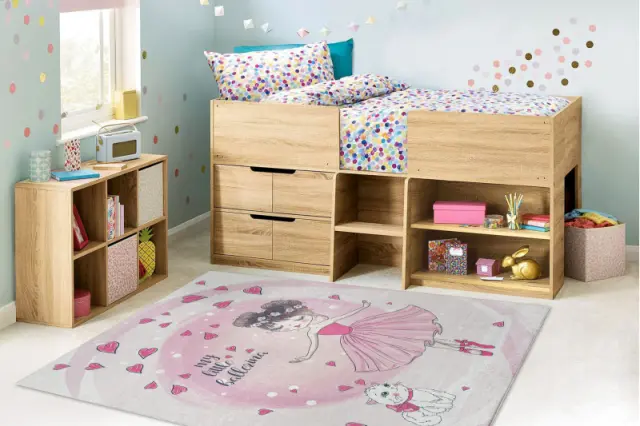 BAMBINO 2161 pralna preproga Ballerina, mačka za otroke protizdrsna - roza 120x170 cm