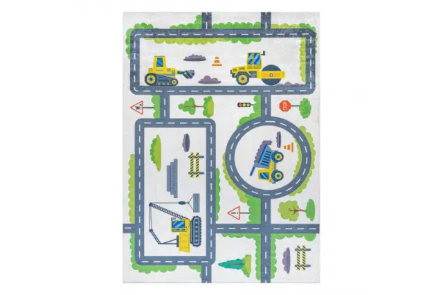 BAMBINO 2338 pralna preproga Bager, ulice za otroke protizdrsna - belo / zelena 200x290 cm