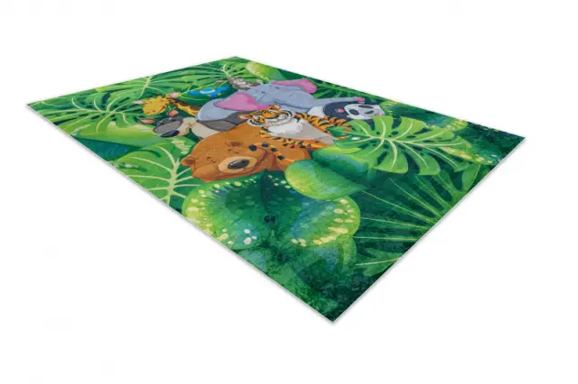 BAMBINO 2651 pralna preproga Živali, džungla za otroke protizdrsna - zelena / smeđa 120x170 cm