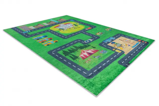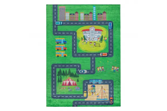 BAMBINO 2660 pralna preproga Mesto, ulice za otroke protizdrsna - zelena / siva 140x200 cm
