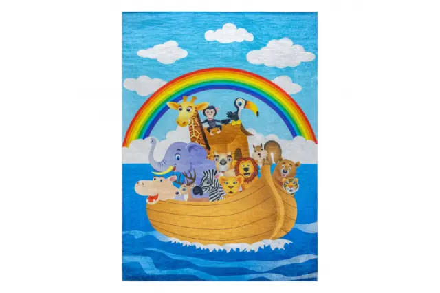 BAMBINO 2685 pralna preproga Živali, Čoln za otroke protizdrsna - plava / smeđa 160x220 cm