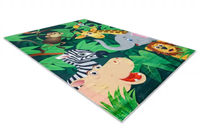 BAMBINO 2705 pralna preproga Živali, Afrika za otroke protizdrsna - zelena / smeđa 160x220 cm