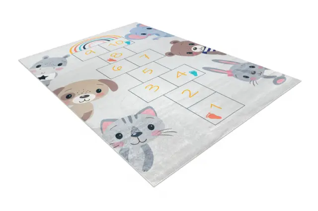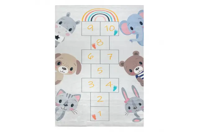 BAMBINO 43092 pralna preproga Živali, mavrica za otroke protizdrsna - siva / rumena 80x150 cm