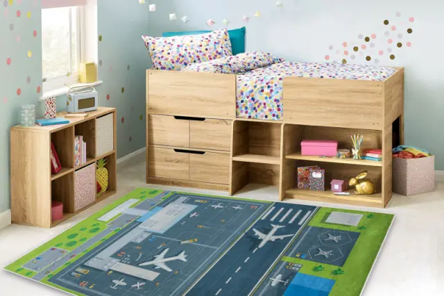 Preproge BAMBINO - kombinacija otroških vzorcev in praktičnih rešitev Otroška soba - edinstven in pomemben prostor za razvoj vsakega otroka. Tu začnejo spoznavati svet okoli sebe. Zato je zelo pomembno, da v tem prostoru zagotovimo visoko raven udobja in varnosti. Preproge BAMBINO so edinstven izdelek. Najnovejše proizvodne tehnike so omogočile izdelavo izdelka, ki ga je mogoče prati v pralnem stroju. S to funkcijo je vzdrževanje čistoče v otroški sobi veliko lažje. Zaradi mehke teksture je večurno igranje na tleh ne le prijetno in udobno, temveč tudi varno. Nedrseče dno preprečuje drsenje izdelka po spolzkih površinah, kar je zelo pomembno, zlasti ko otroci delajo prve korake v življenju. Struktura iz mehke pene zagotavlja tudi toplotno izolacijo pred hladnimi tlemi. Značilnosti pralnih podlog BABY: - Čudoviti otroški vzorci v kombinaciji z umirjenimi barvami bodo v otroško sobo vnesli pravljično vzdušje - Preproga ima kratek flis, v katerega se ne morejo skriti niti najmanjše igrače - Narejen je iz 100-odstotnega poliestra - materiala, ki je prijazen do alergikov in otrok - Preprogo lahko perete v pralnem stroju pri temperaturi največ 30 °C, zato jo je zelo enostavno vzdrževati čisto in za to ni treba porabiti preveč časa - Nedrseče dno preprečuje drsenje izdelka po tleh, kar znatno poveča stopnjo varnosti v prostoru - Preproga ima certifikat OEKO-TEX, ki potrjuje varno sestavo izdelka za uporabnike in okolje - Uporablja se lahko s talnim ogrevanjem Izjemno praktično, udobno in lepo - popolna kombinacija. Na tisoče staršev in njihovih otrok obožuje preproge, ki jih je mogoče prati v pralnem stroju. Poglejte, kako zelo bo preproga BABY spremenila otroško sobo!