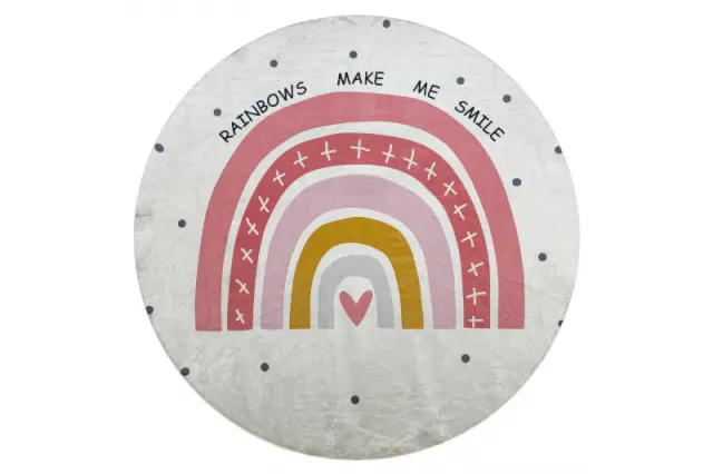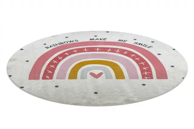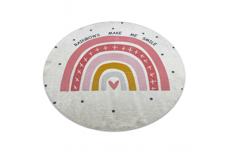 BAMBINO 47810 krog pralna preproga Mavrica, pike za otroke protizdrsna - belo / roza cercle 80 cm