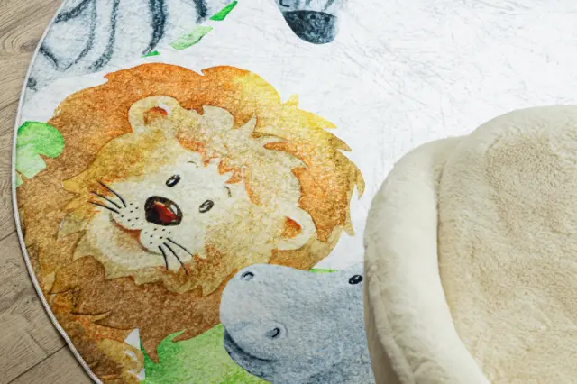 BAMBINO 54090 krog pralna preproga Živali, Afrika za otroke protizdrsna - belo / zelena cercle 80 cm