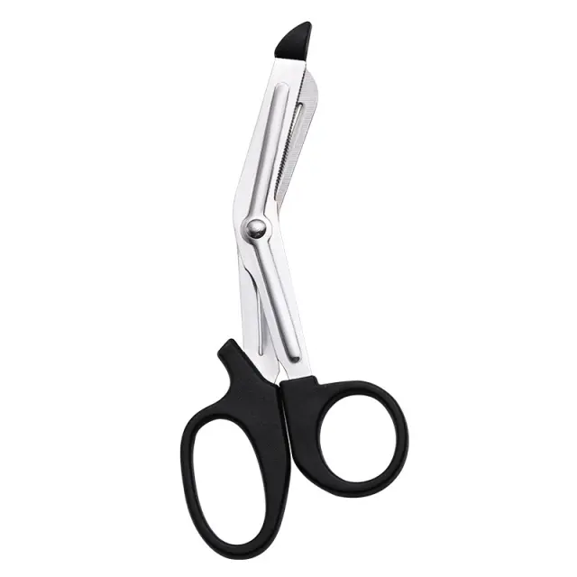 Ostre in natančne: Te bandažne škarje so zasnovane za natančno rezanje, saj zagotavljajo čiste in enostavne reze različnih materialov, kot so povoji, gaza in tkanine.