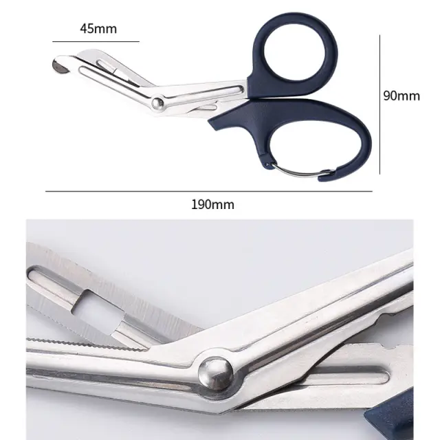 Ostre in natančne: Te bandažne škarje so zasnovane za natančno rezanje, saj zagotavljajo čiste in enostavne reze različnih materialov, kot so povoji, gaza in tkanine.