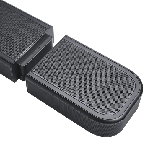 Odstranljiva brezžična zvočnika enostavno postavite za seboj in ustvarite pravi surround učinek brez napeljave kablov. Ko jih ne potrebujete, se ponovno namestita na soundbar in polnita.