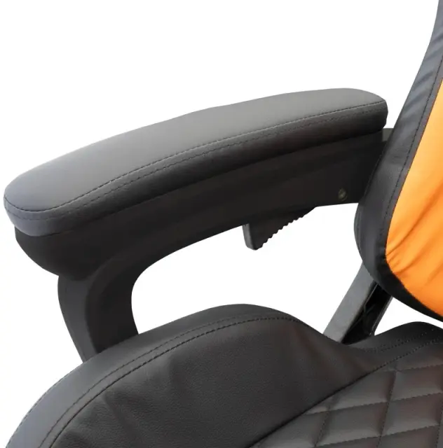 Naslon za roke: 1D Nastavitev nagiba: D Nagib: 90°-150° Velikost in material koles: 50 mm, najlon Blazina za glavo in hrbet: N Višina sedeža (cm): 47-57 Velikost sedeža (cm): 52x52x8 Višina naslonjala (cm): 121-131 Barva: Črna/oranžna Material prevleke za stol: PU + goba Material ogrodja: Iverna plošča Dimenzije (cm): 64x64x121-131 Vrsta podnožja: Mehanizem metulj Nosilnost (kg): 150 Potrebna montaža: D