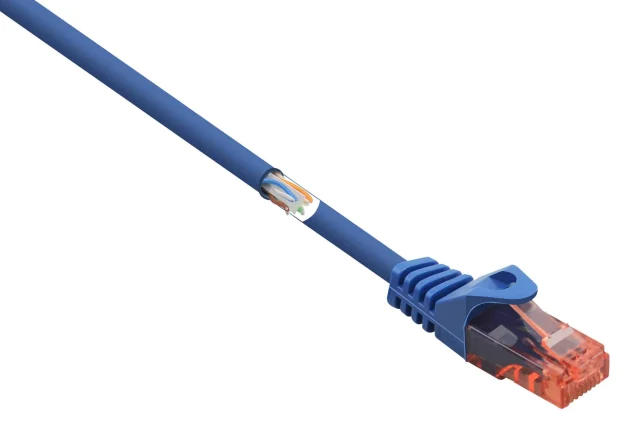 Basetech BT-1719414 RJ45 omrežni kabel\, Patch kabel cat 6 U/UTP 15.00 m modra z zaščitnim zapornim zatičem\, brez halogena 1 kos