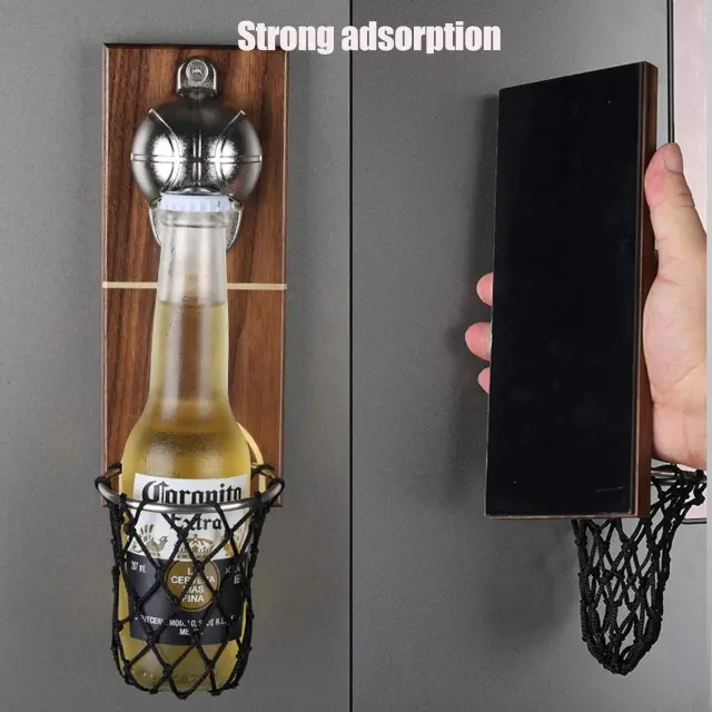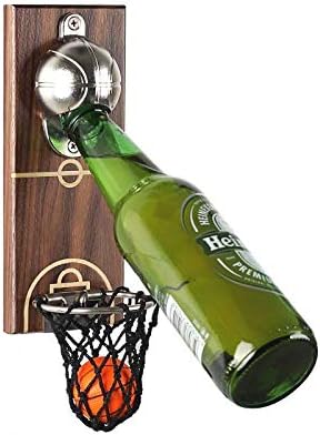 🍺【High Quality】: The bottle opener is made of selected wood and stainless steel, which is not easy to deform and is durable. Professional retro craftsmanship, exuding a classic and elegant atmosphere, can greatly improve your quality of life.☛【Easy to Open Bottle Cap】: You don’t need to use your teeth or other weird ways to open the bottle in front of your guests. Effortlessly remove the bottle cap with one hand and it will drop into the storage basket once opened, super convenient.♥【Easy to Install】: The back of the bottle opener is a soft rubber pad, which is highly magnetic and can be firmly attached to smooth surfaces (refrigerator or metal), making it a practical decoration for your home.☀【A Unique Gift】: Creative basketball box design, for those who like to drink beer or like to drink bottled drinks, this is a gift that you will love and enjoy the fun of drinking beer or drinking.🍻【Suitable for Every Occasion】: This is the perfect gift for basketball fans. You can stick your favorite ones on the back panel to make your special decoration. Not just for bars, craft boards, but also outdoors, around garden fences or outside garages.