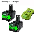 Baterija, 6000mAh kapaciteta, združljiva z orodji Ryobi 18-Volt One+, 2Baterije 1Polnilec