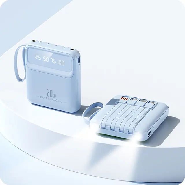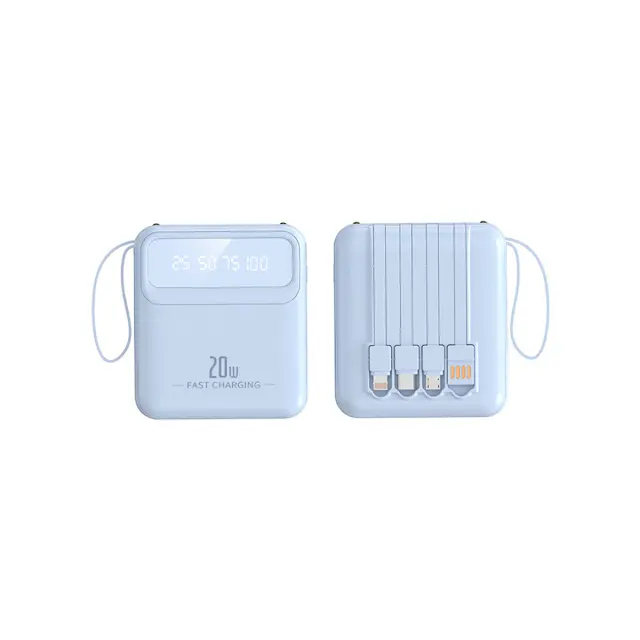 Baterija PowerBank 10000mAh 20W z LED zaslonom / svetilko / kompaktnimi kabli, Modra