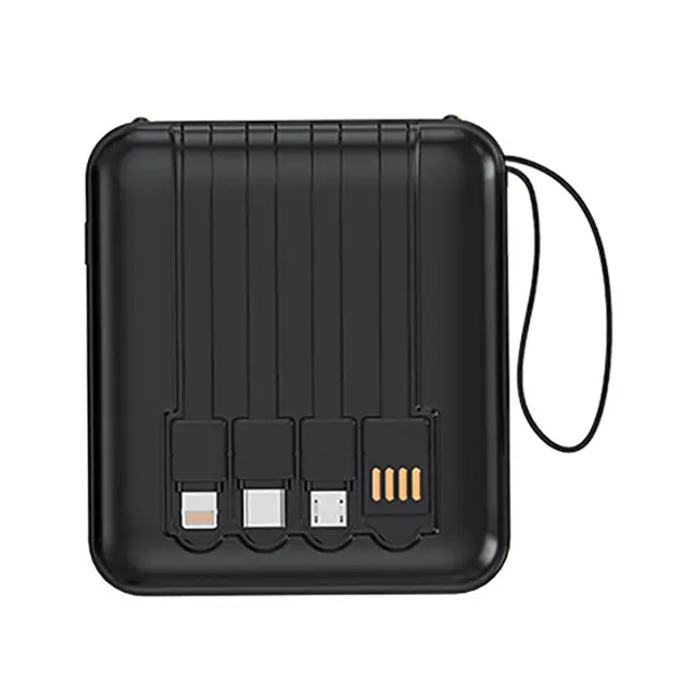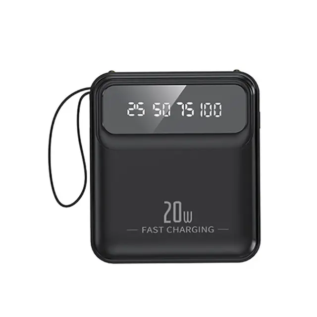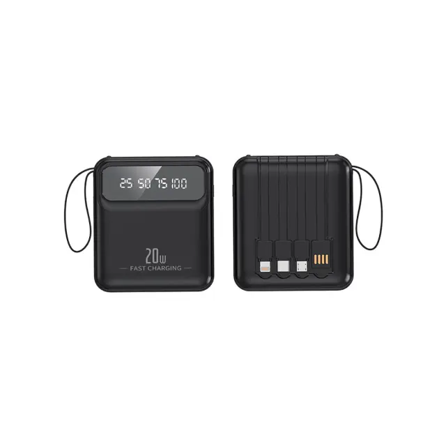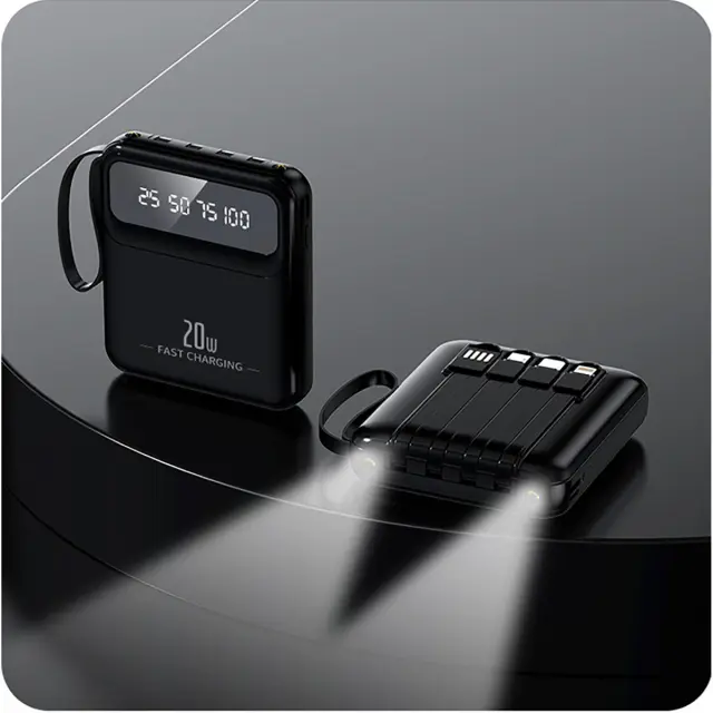 Baterija PowerBank 10000mAh 20W z LED zaslonom / svetilko / kompaktnimi kabli, Črna