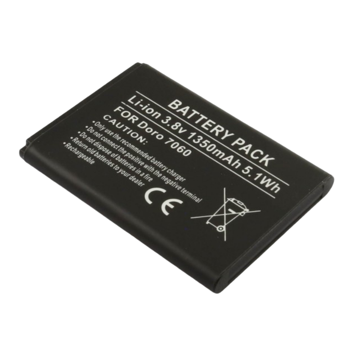 Združljiv z modeli Doro 7060 / 7030 / 7031 / 7080. Nazivna napetost 3,8 V litij-ionska tehnologija. Kapaciteta 1350 mAh 5,1Wh izhodne energije. Format, primeren za najnovejše flip telefone Doro.