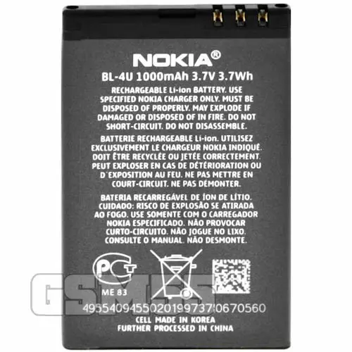 Originalna baterija 1000mAh model BL-4U. Pridobite prvotno avtonomijo svojega mobilnega telefona. Varno polnjenje: odporno na preobremenitev, odporno na pregrevanje. Visoka kakovost in dolga življenjska doba.
