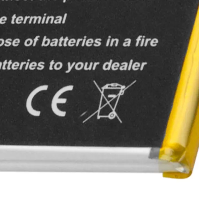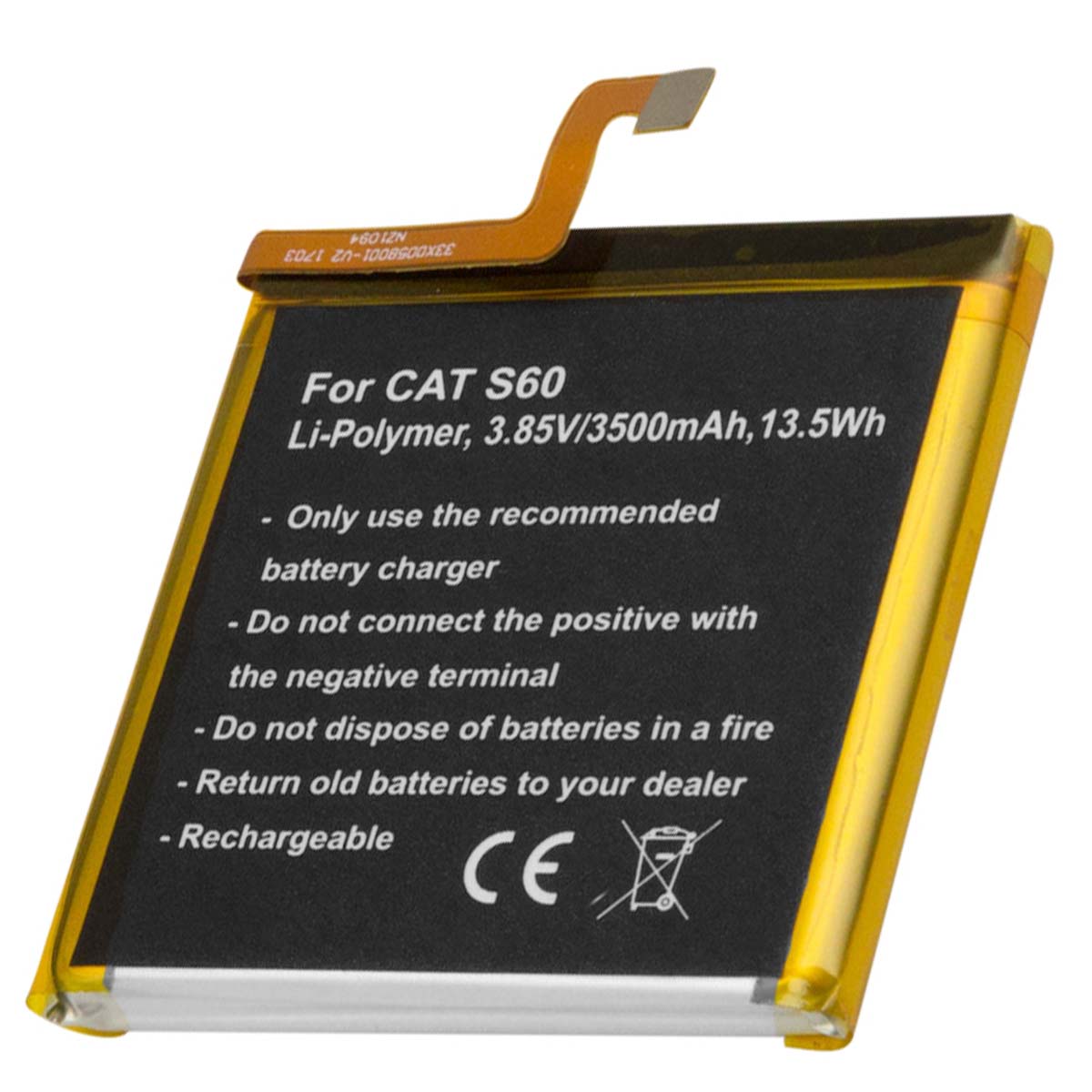 Baterija, združljiva s pametnim telefonom CAT S60. Neposredna zamenjava za tehnično referenco APP-12F-F5757I-CGX-111. kapaciteta 3500 mAh, napetost 3,85 V, gostota energije 13,5 Wh. Vgrajen fleksibilen priključek tipa traku na vrhu.