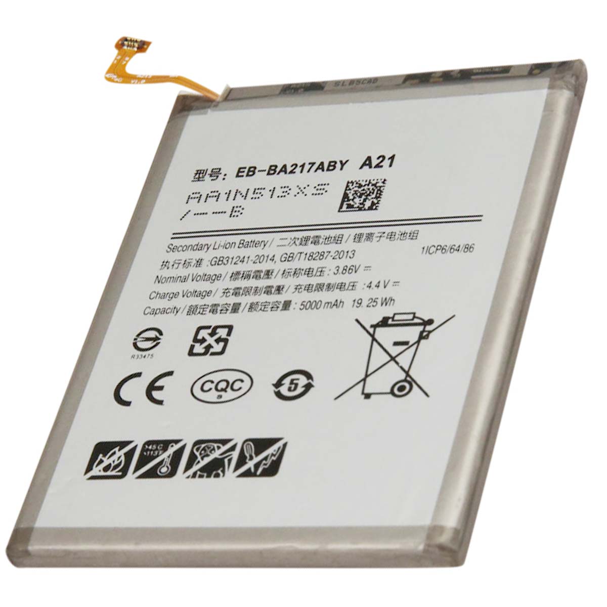 Baterija je združljiva s pametnim telefonom Samsung Galaxy A21s 2020, identifikator SM-A217F. Neposredna zamenjava za tehnični referenci EB-BA217ABY in GH82-22989A. Kapaciteta 5000 mAh, nazivna napetost 3,86 V, gostota energije 19,25 MWh. Ploščata li-polimerna celica z vgrajenim spajkanim fleksibilnim priključkom.