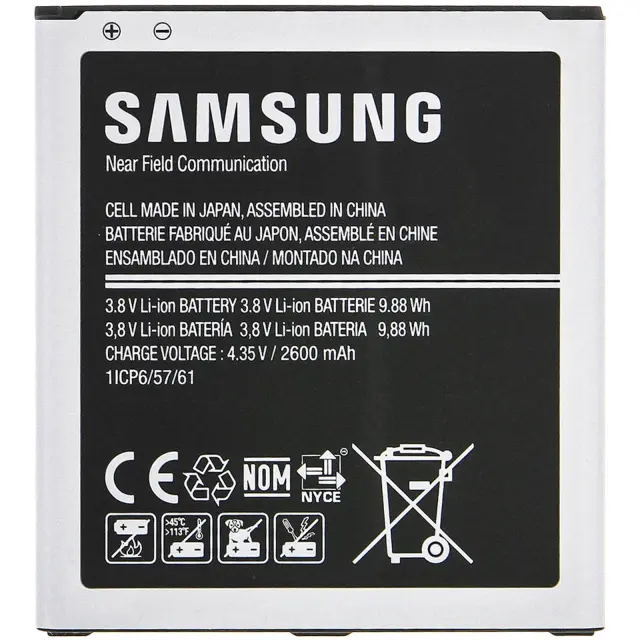 Samsung originalna baterija EB-BG530BBE 2600mAh za Samsung Galaxy Grand Prime. Pridobite prvotno avtonomijo svojega mobilnega telefona. Varno polnjenje: odporno na preobremenitev, odporno na pregrevanje. Visoka kakovost in dolga življenjska doba.