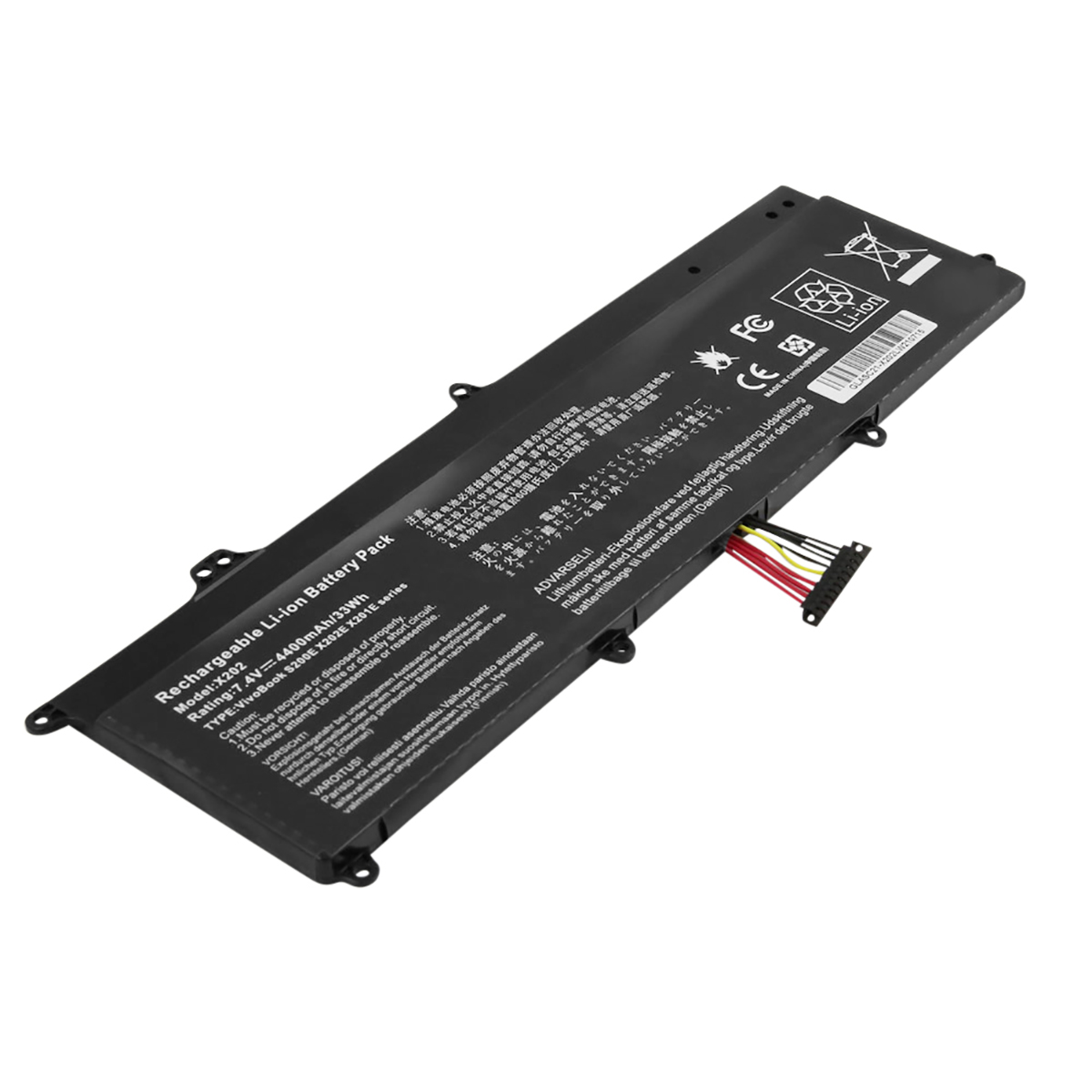 Vgrajena 4400 mAh Li-Polimer baterija za največjo vsakodnevno avtonomijo. Napetost 7,4 V in 33 Wh energije za stalno in varno delovanje. Združljiv z Asus VivoBook X202E, X201, S200E, F201E in njihovimi različicami. Ekvivalentna številka dela C21-X202, za namestitev ni potrebno orodje.