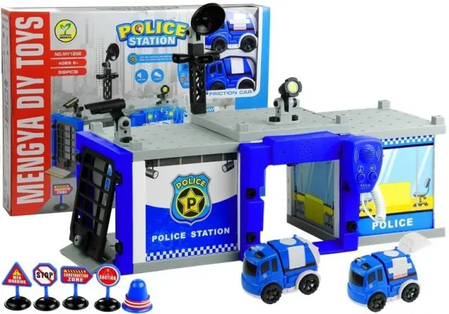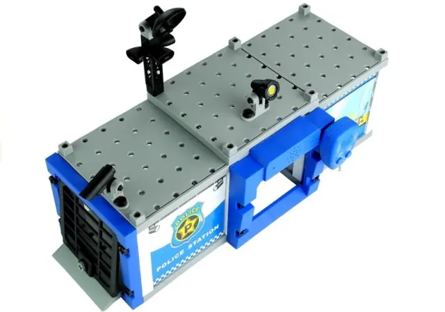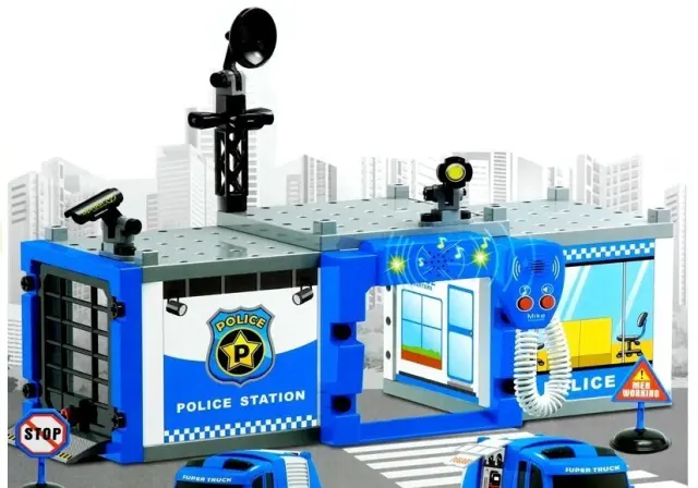 Komplet, sestavljen iz dveh policijskih avtomobilov in podlage, bo odličen način, da se malček zabava s svojimi sorojenci ali starši. Z malo pomoči skrbnika bo otrok hitro sestavil zgradbo Policije, nanjo pa postavil najpomembnejšo opremo – satelitsko anteno in kamere – slikovna navodila na škatli bodo to opravilo zagotovo olajšala. Posamezni elementi podlage in avtomobilov so premični, kar dodatno poveča užitek ob igranju.