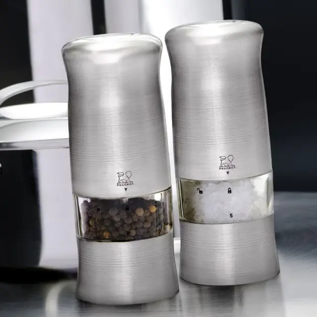 PEUGEOT BATERIJSKI MLINČEK ZA SOL ZELI vsebuje mehanizem za drobljenje soli in je izdelan iz visoko kakovostnega posebej obdelanega nerjavečega jekla. Vsebuje 4 baterije. Materiali in zasnova mehanizma so odporni proti koroziji.