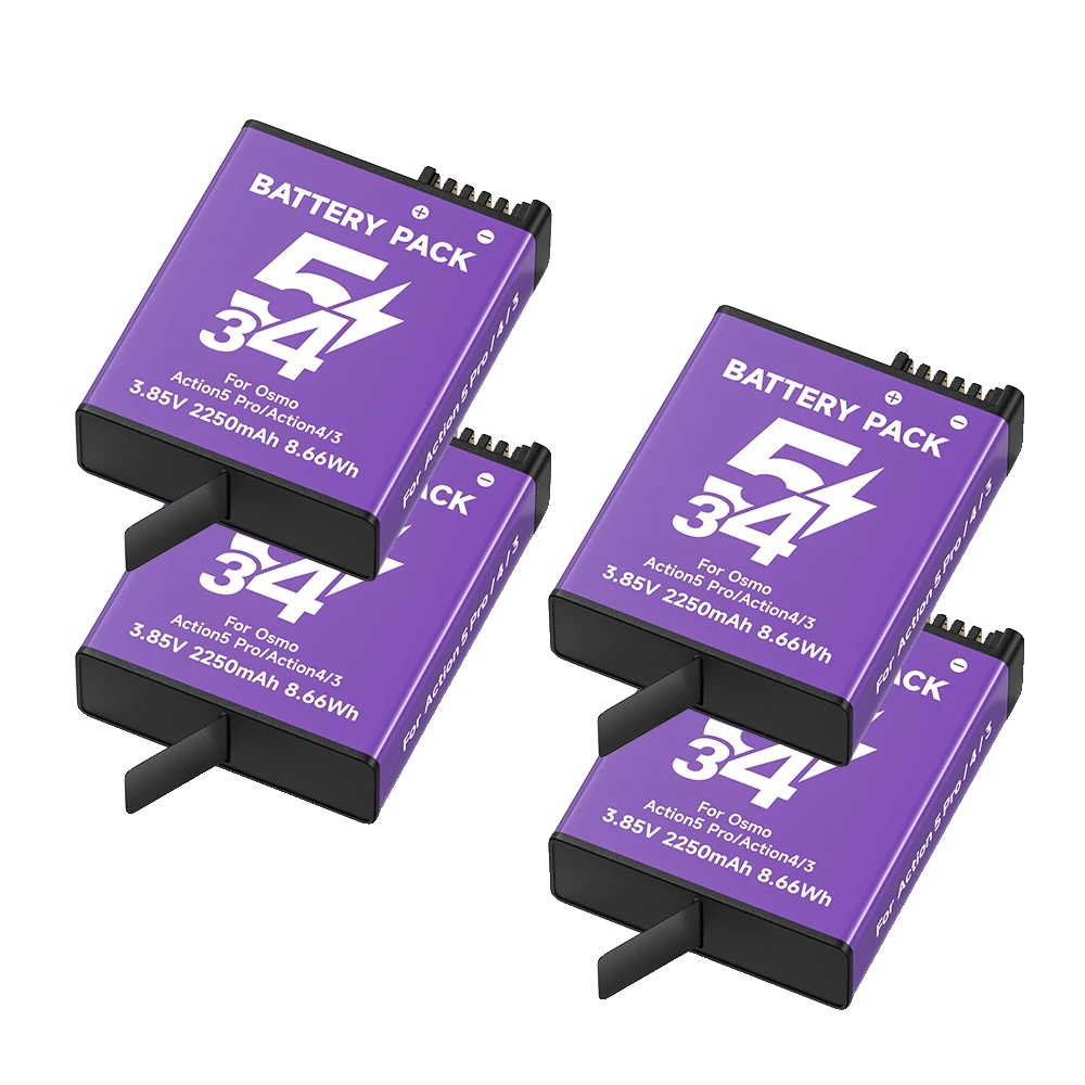 Baterijski paket za kamero DJI Osmo Action 3/4/5 Pro, kapaciteta 2250mAh, polnilec z dvema režama, 4PCS Baterija