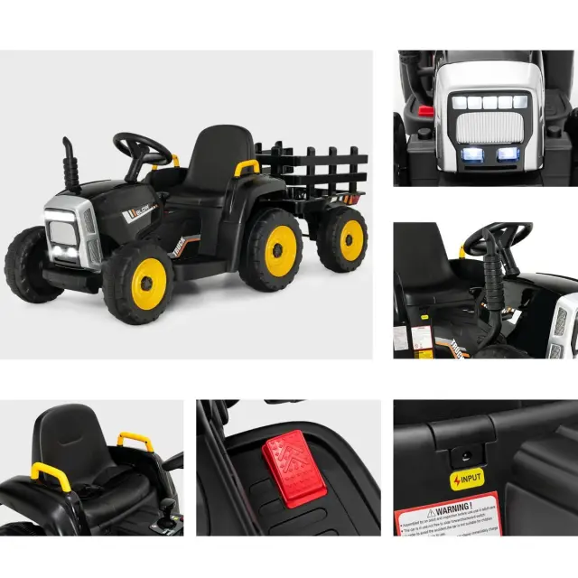 Idealno darilo za otroke: Ta traktor za vožnjo je s svojim realističnim videzom, jasnimi lučmi, prestavno ročico, ki jo je enostavno upravljati, in volanom s sireno zasnovan tako, da vašim otrokom omogoča kar najbolj pristno izkušnjo vožnje. Vgrajeno ima tudi zvočno napravo, ki lahko pri nastavljivi glasnosti predvaja glasbo, priključeno na vrata USB ali Bluetooth.