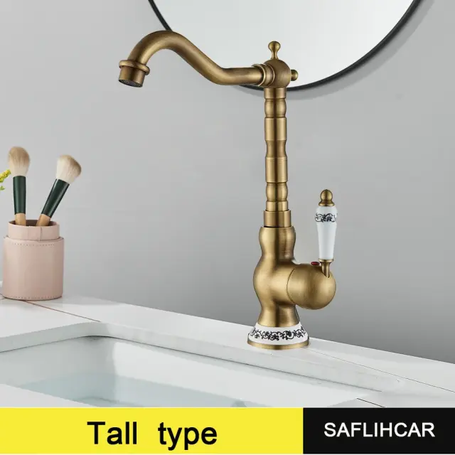 • Eleganten dizajn: S klasičnim stilom in starinskim medeninastim zaključkom, ta pipa doda pridih sofisticiranosti vsakemu kopalniškemu ali kuhinjskemu dekorju.