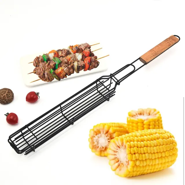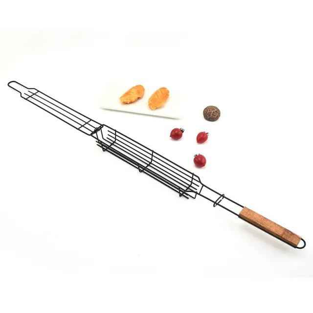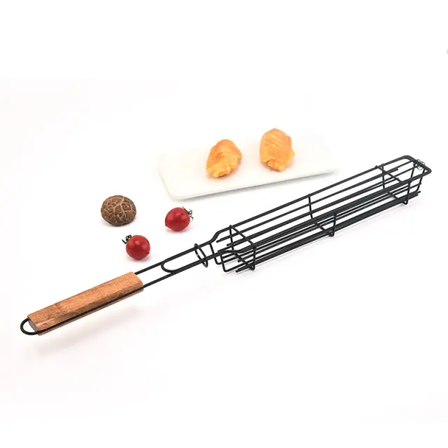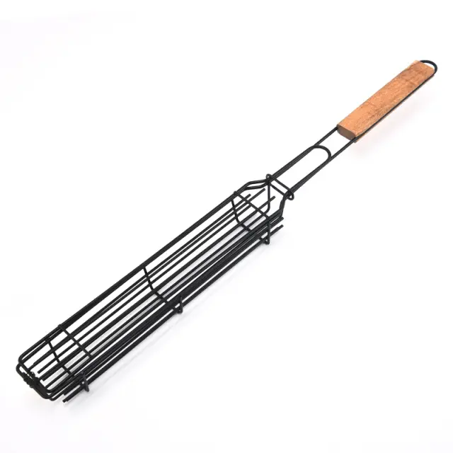 Košara za žar je zasnovana tako, da pomaga držati nabodano hrano na mestu in preprečuje, da bi se vrtela ali premikala, ko obrnete žar. Idealno za velike zabave ali kuhanje.