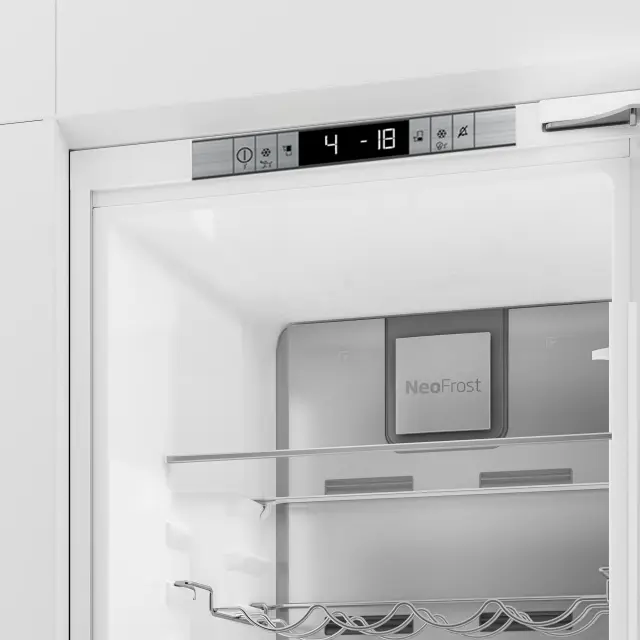 Pri umeščanju hladilnika med pohištvo vam ne bo potrebno puščati dodatnega prostora, da se bodo vrata hladilnika lahko odprla. Zaradi posebnih pantov se vrata odpirajo vzporedno s stransko stranico hladilnika, zato ni potrebno, kot pri nekaterih modelih, puščati dodatnih nekaj centimetrov prostora ob steni ali sosednjem elementu, da bi vrata odprli pravilno. Za popolno kuhinjo je potrebno tako malo.