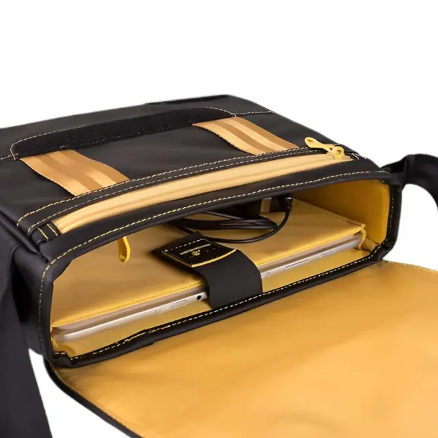 Ramenska torba LE Reporter zagotavlja učinkovito zaščito za vašo 10-palčno tablično napravo zaradi varnega oblazinjenega predala.. Glavni predal je pritrjen z elastičnim trakom, ki omejuje udarce na poti.. Sprednja klop z zapiranjem na velcro za hiter dostop do vsakodnevnih pripomočkov. Praktični žepi z zadrgo za kable, dokumente in osnovne potrebščine.