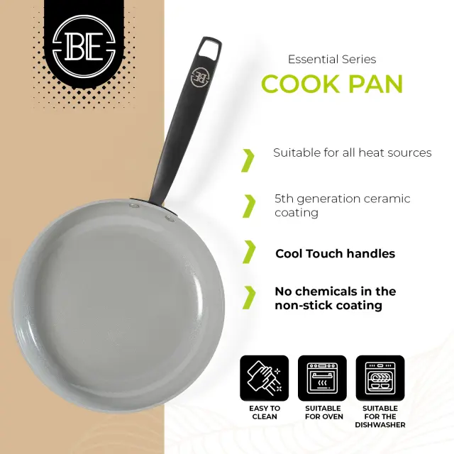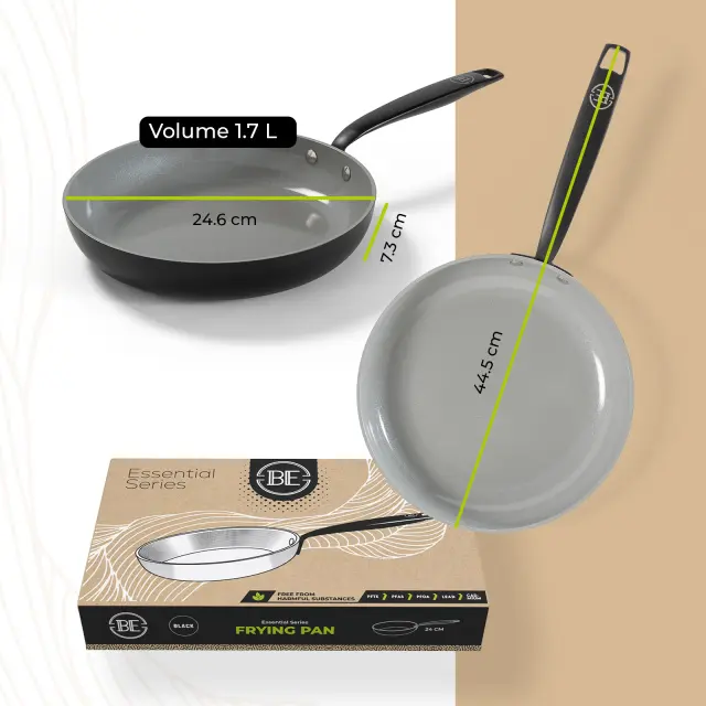 BE Living Ponev Essential Black 24 cm, idealna za vse vire toplote, vključno z indukcijo, in brez PFAS. Nepogrešljiv dodatek vsaki moderni kuhinji.
