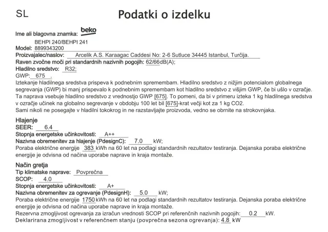 Vrnjen artikel - BEKO BEHPI240/BEHPI241 klimatska naprava