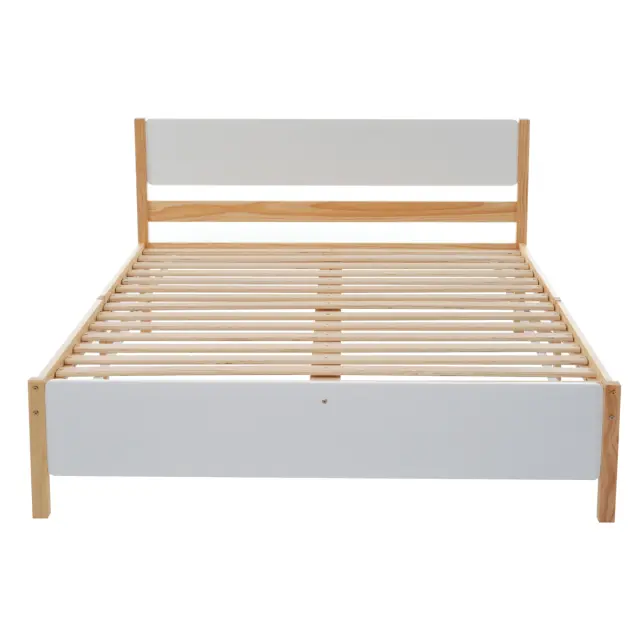 Bel in naraven okvir za zakonsko posteljo iz borovega lesa (140x200 cm) z vzglavjem/vznožjem iz MDF