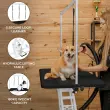 Izboljšajte svojo izkušnjo striženja z našo inovativno in zanesljivo mizo za striženje psov, zasnovano tako, da ustreza potrebam tako profesionalnih negovalcev kot lastnikov hišnih ljubljenčkov. Naša miza za nego, izdelana iz robustnega jeklenega okvirja, zagotavlja stabilnost in vzdržljivost ter zagotavlja zanesljivo platformo za vse vaše potrebe po negi. Prevlečen s čisto belo barvo, ne le izboljša estetiko vaše negovalne postaje, ampak doda tudi dodatno plast zaščite in podaljša njeno življenjsko dobo. Štiri nastavljive noge prispevajo k stabilnosti delovne postaje, prilagajajo se neravnim površinam in ustvarjajo varno okolje za nego. Ta miza za nego, ki meri 106 cm x 61 cm, ponuja dovolj prostora za opravila negovanja, hkrati pa ohranja kompakten odtis. Miza, ki se ponaša z impresivno nosilnostjo 180 kg, lahko sprejme različne pasme in velikosti psov, zaradi česar je idealna za domačo in profesionalno uporabo. Z lahkoto prilagodite višino mize na želeno delovno raven od 55,5 cm do 101,5 cm s pomočjo hidravlične nožne črpalke, kar nudi brezhibno izkušnjo nege. H Bar je tudi priročno nastavljiv po višini za prilagajanje različnim živalim. Pritrditev na mizo z vpenjalnim mehanizmom zagotavlja trdno oprijem, hkrati pa jo je mogoče po potrebi enostavno odstraniti. Privlačna površina mize iz črne PVC gume ne poveča le vizualne privlačnosti, temveč daje prednost tudi varnosti. Njegova nedrseča lastnost zagotavlja varnost in udobje vaših živali med nego. Površino je tudi zelo enostavno očistiti, kar pomaga ohranjati higienske standarde med sejami. Za dodatno varnost je delovna postaja opremljena s tremi zankastimi povodci in varnimi zaponkami, ki zagotavljajo zanesljiv zadrževalni sistem za vaše ljubljenčke. To vam omogoča, da se osredotočite na postopek nege, ne da bi pri tem skrbeli za varnost vaših kosmatih prijateljev. Izboljšajte svojo rutino nege brez truda z našo mizo za nego psov – idealna rešitev za praktično in prijetno izkušnjo za vas in vaše kosmate spremljevalce.  Lastnosti izdelka: * Trden jekleni okvir in 4 izravnalne noge * Enostavno čiščenje nedrseče gumijaste mize * Hidravlični dvižni sistem za uporabo po meri * Velikodušna nosilnost 180 kg * Nastavljiva H palica s 3 povodci  Tehnični podatki: * Barva okvirja: bela * Barva mize: črna * Teža: 42 kg * Material okvirja: barvano škatlasto jeklo * Material mize: vezan les s površino iz PVC gume * Največja višina s palico: 186,5 cm / 1,86 m / 73,4'' * Največja višina mize: 100,3 cm / 1 m / 39,5'' * Najmanjša višina mize: 55,5 cm / 0,56 m / 21,9'' * Širina: 106 cm / 1,06 m / 41,7'' * Globina: 61 cm / 0,61 m / 24'' * Mere mize: 106 cm x 61 cm * Višina palice H: 86,2 cm * Širina palice H: 2,5 cm * Nosilnost: 180 kg * Število stopal: 400 kg  Vsebina škatle: * 1 x hidravlična miza za nego * 1 x črna mizna plošča Easy Clean * 1 x vzdržljiv jekleni nosilni okvir * 3 x varne zanke za nego