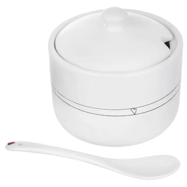 Bela keramična sladkornica z žličko SRCE 300 ml