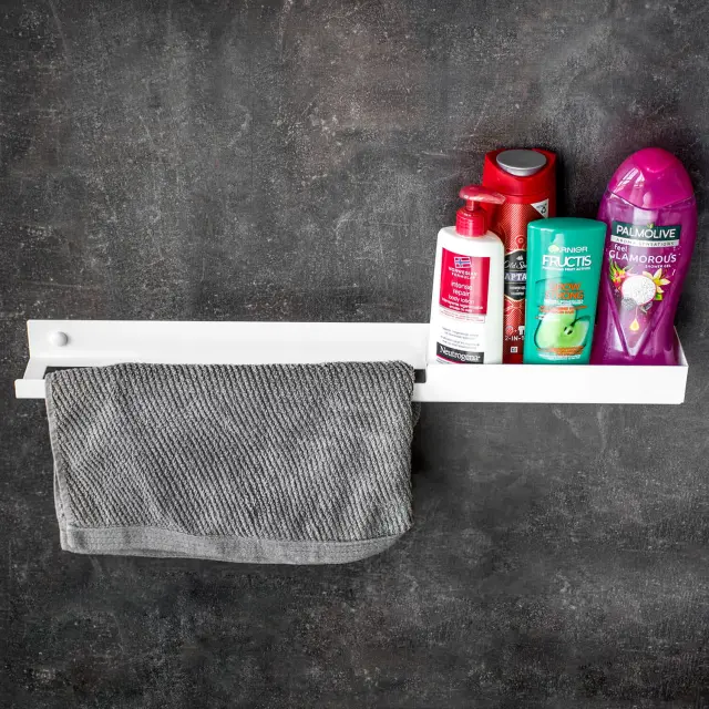 Bela kopalniška polica za tuš, polica za kopalniško kozmetiko