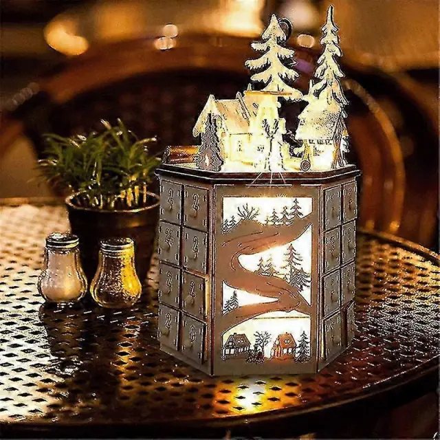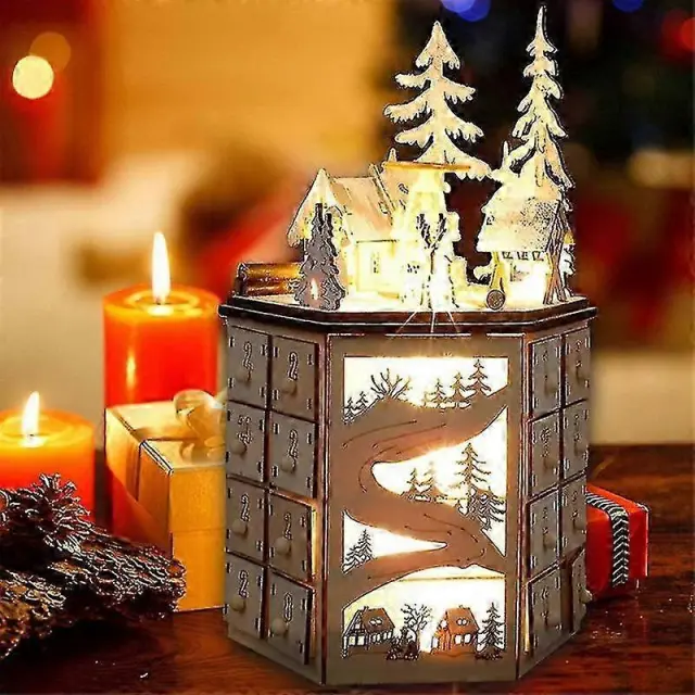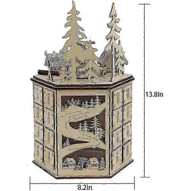 Bela lesena hiška za adventni koledar s 24 predali in led lučkami Odštevalni adventni koledarji za večkratno uporabo s prizorom vasi/gozda do bož